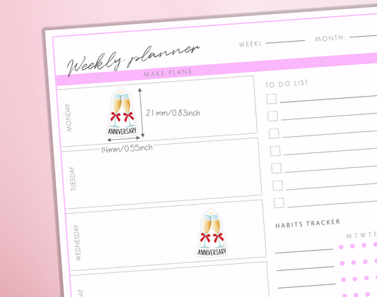 Anniversary Planner Sticker Champagne Glasses Celebration Reminder Journal Sticker Sheet