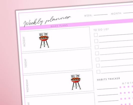 BBQ Time Planner Sticker Grill Barbecue Cooking Food Meal Summer Activity Family Fun Time Summer Party Bullet Journal Sticker Sheet