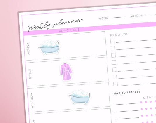 Bath Time Planner Stickers | Bath and Bathrobe/Dressing Gown Stickers | Bubble Bath Stickers | Relax Journal Diary Sticker Sheet