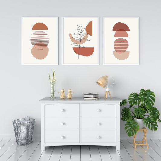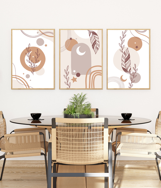 Boho Natural Tones Wall Print set of 3 | Moon Floral Abstract Poster Art | Wall Decor A4 A3 Bedroom Living Room Home Decor